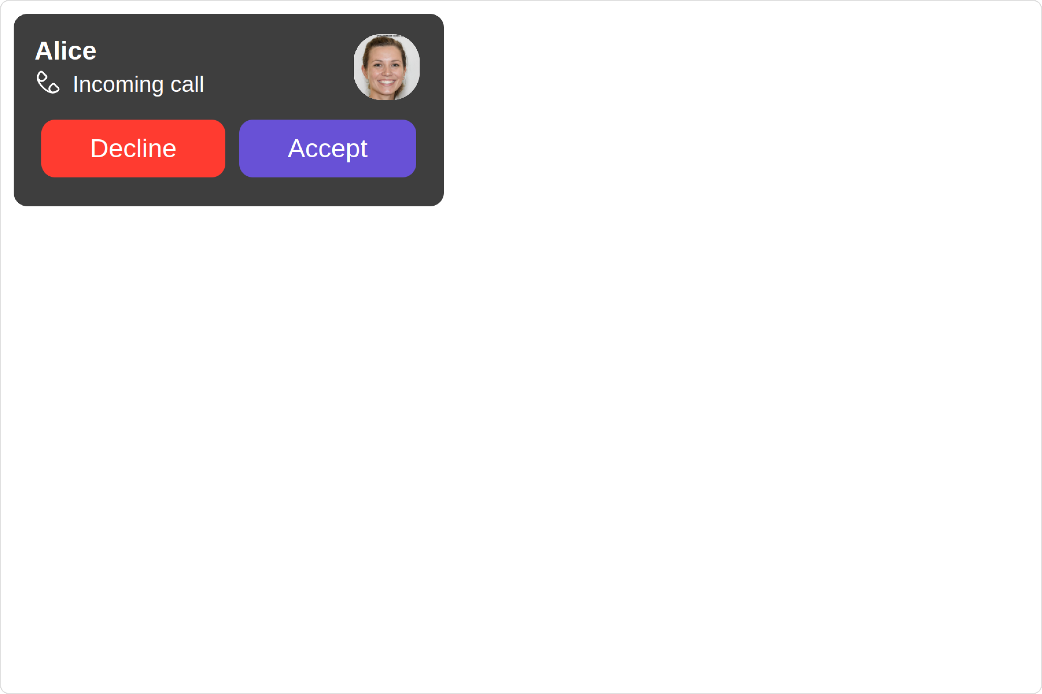 The Incoming call is a Component that serves as a visual representation when the user receives an incoming call, such as a voice call or video call, providing options to answer or decline the call.