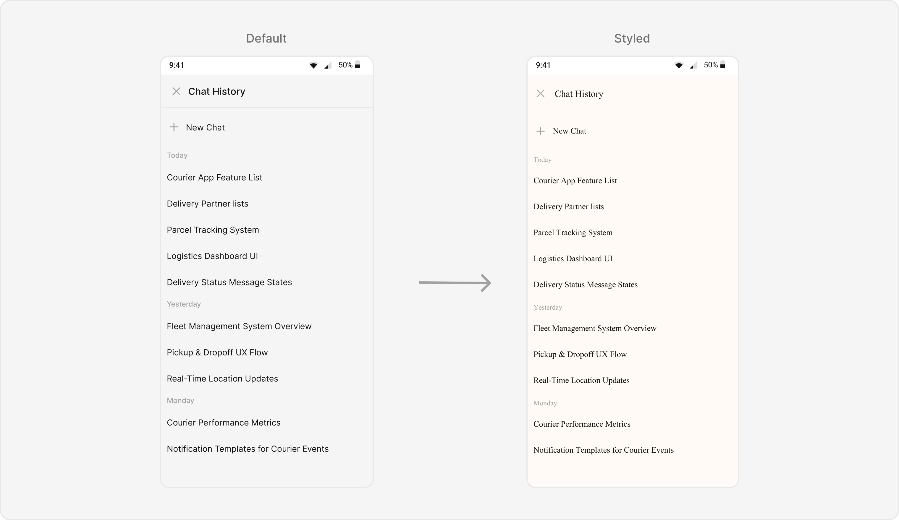 You can set the style to the CometChatAIAssistantChatHistory Widget to customize the styling.