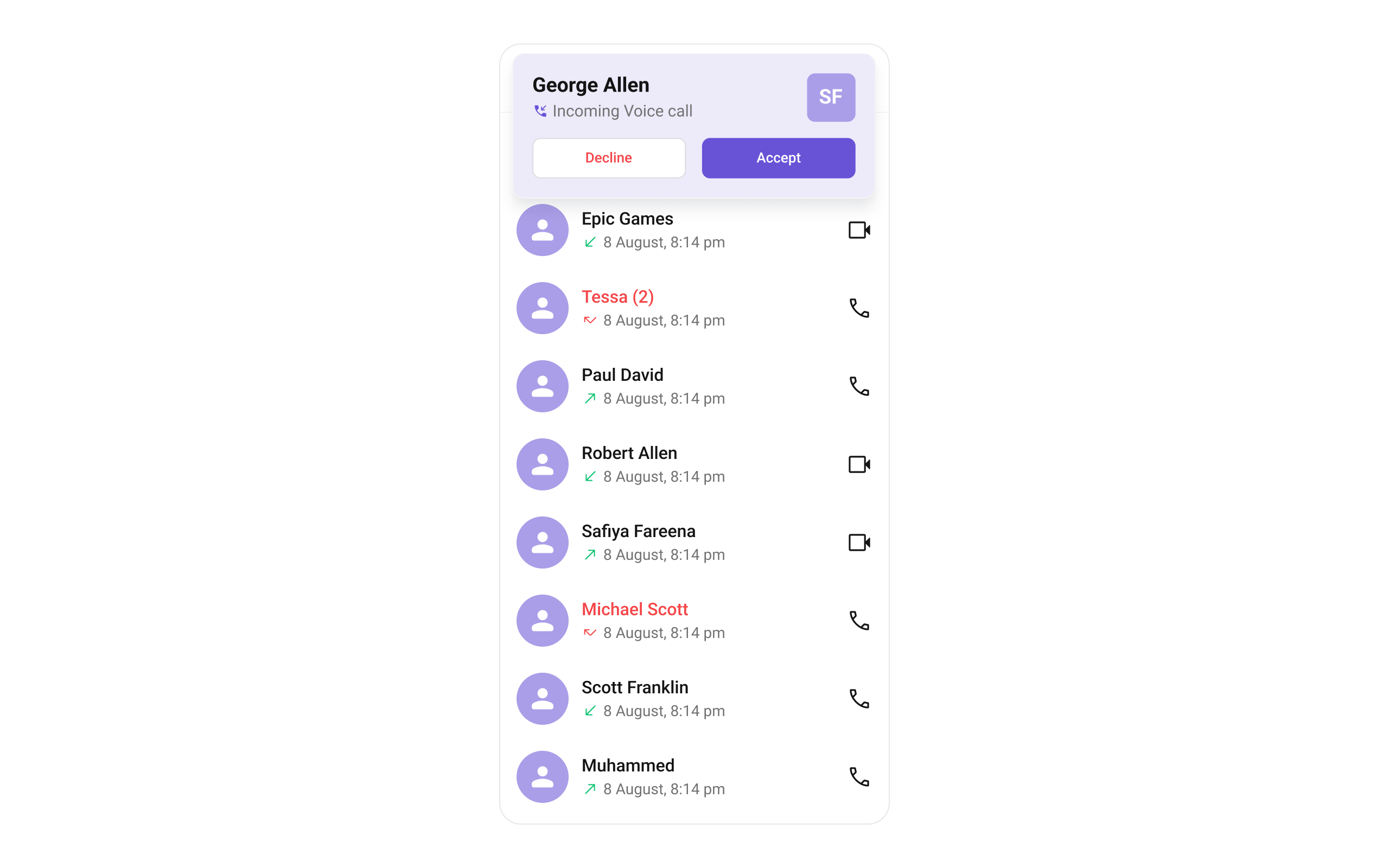 TheCometChatIncomingCall is a Widget that serves as a visual representation when the user receives an incoming call, such as a voice call or video call, providing options to answer or decline the call.