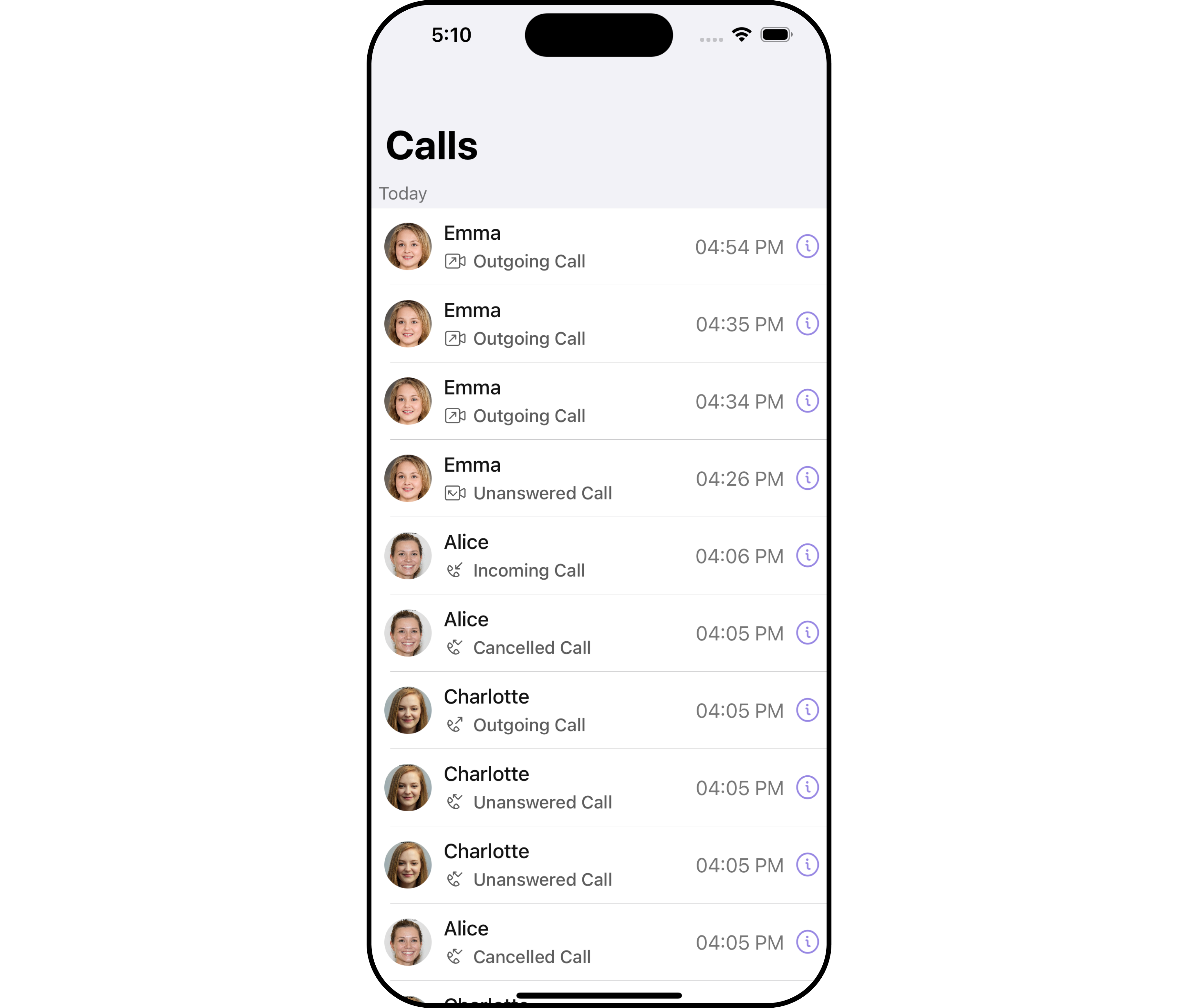 CometChatCallLogs is a Component that shows the list of Call Log available . By default, names are shown for all listed users, along with their avatar if available.